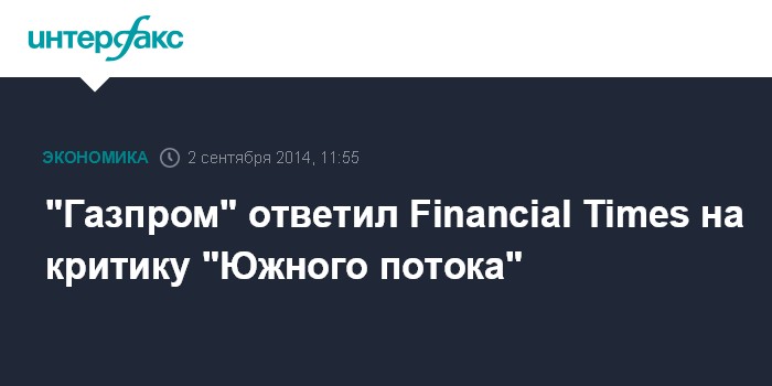 "Газпром" ответил Financial Times на критику "Южного потока"