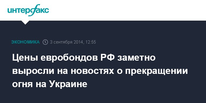 Резкому росту стоимости российских еврооблигаций способствовали новости о том, что президенты Украины и России Петр Порошенко и Владимир Путин договорились о постоянном прекращении огня на Донбассе.