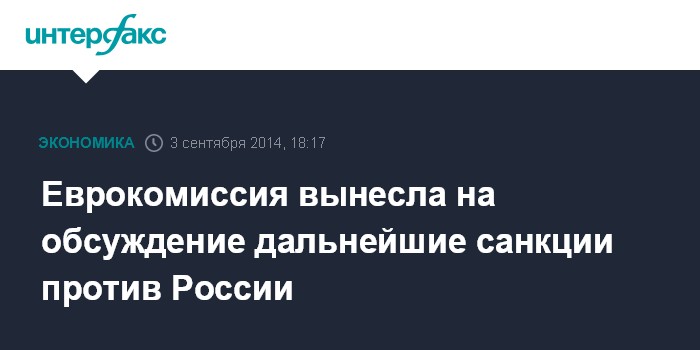 Москва. 3 сентября. INTERFAX.RU - Еврокомиссия приняла для рассмотрения стран - членов ЕС дальнейшие антироссийские меры относительно допусков к рынкам капиталов, использованию чувствительных технологий и товаров двойного назначения.