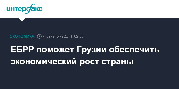 Москва. 4 сентября. INTERFAX.RU - Европейский банк реконструкции и развития (ЕБРР) обещает Грузии поддержку в усилении экономического потенциала страны на пути ее интеграции в Европу.