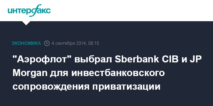 "Аэрофлот" выбрал Sberbank CIB и JP Morgan для инвестбанковского сопровождения приватизации