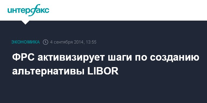 Москва. 4 сентября. INTERFAX.RU - ФРС США стремится активнее привлечь участников финансовых рынков к согласованию альтернативы ставке LIBOR, введение которой стало бы серьезным преобразованием для рынков общим объемом в сотни триллионов долларов, пишет газета Financial Times.