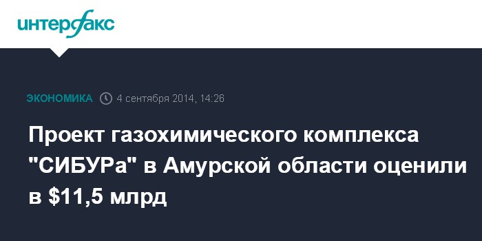 Москва. 4 сентября. INTERFAX.RU - Инвестиции в строительство Амурского газоперерабатывающего комплекса оцениваются в 416,6 млрд рублей (около $11,5 млрд), следует из доклада министра РФ по развитию Дальнего Востока Александра Галушки. Из всего объема инвестиций бюджет может предоставить 25,2 млрд рублей.
