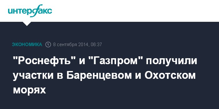 Москва. 8 сентября. INTERFAX.RU - Премьер-министр России Дмитрий Медведев подписал распоряжение о предоставлении "Газпрому" и "Роснефти" права пользования участками недр в Баренцевом и Охотском морях. Об этом сообщается в пресс-релизе правительства РФ.