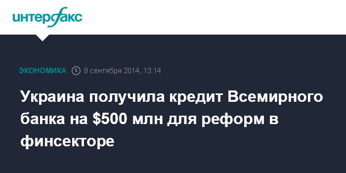 Москва. 8 сентября. INTERFAX.RU - Министерство финансов Украины в понедельник получило от Всемирного банка средства первого займа на политику развития в финансовом секторе в сумме $500 млн, сообщается на сайте Минфина.