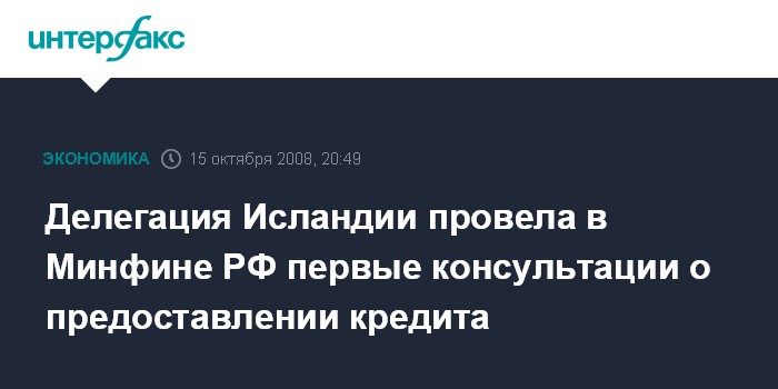 Москва. 15 октября. INTERFAX.RU - Делегация Центрального банка и министерства финансов Исландии провела в министерстве финансов РФ первый раунд консультаций о возможности предоставления Россией кредита Исландии для стабилизации банковской системы этой страны, сообщается в совместном пресс-релизе участников переговоров.
