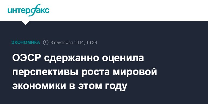 Москва. 8 сентября. INTERFAX.RU - Динамика опережающих показателей, отслеживаемых Организацией экономического сотрудничества и развития (ОЭСР), в июле 2014 года свидетельствовала о сдержанных перспективах роста мировой экономики в предстоящие месяцы. Как отмечают эксперты, 2014 год вряд ли оправдает возлагавшиеся на него ожидания существенного усиления темпов экономического восстановления.