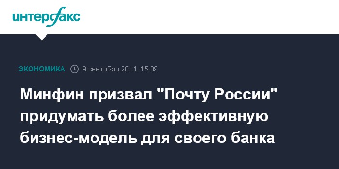 Минфин призвал "Почту России" придумать более эффективную бизнес-модель для своего банка