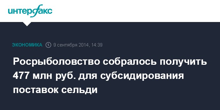 Москва. 9 сентября. INTERFAX.RU - Росрыболовству требуется 477 млн рублей для субсидирования поставок тихоокеанской сельди с Дальнего Востока в центральные регионы страны в рамках импортозамещения.