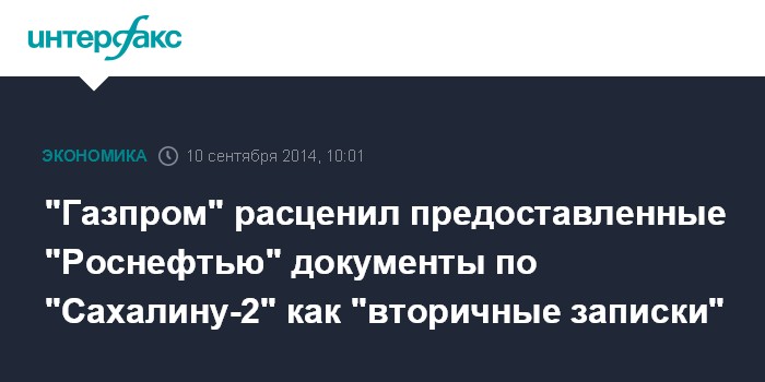 "Газпром" расценил предоставленные "Роснефтью" документы по "Сахалину-2" как "вторичные записки"