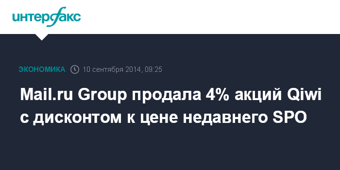 Mail.ru Group продала 4% акций Qiwi с дисконтом к цене недавнего SPO