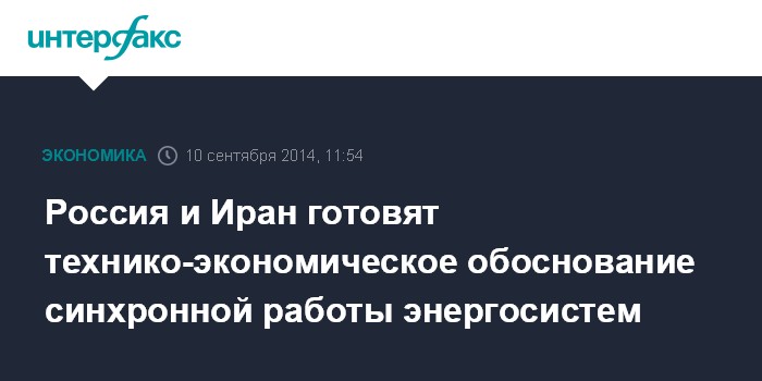 Москва. 10 сентября. INTERFAX.RU - Россия и Иран готовят технико-экономическое обоснование (ТЭО) синхронной работы энергосистем Ирана, РФ и Азербайджана, сообщил министр энергетики РФ Александр Новак в интервью "Россия 24". "Иранская стороны заинтересована. Сначала нужно проработать экономическую подоплеку этого проекта", - сказал он.