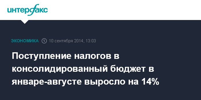 Поступление налогов в консолидированный бюджет в январе-августе выросло на 14%