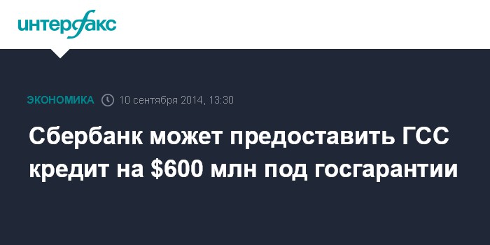 Сбербанк может предоставить ГСС кредит на $600 млн под госгарантии