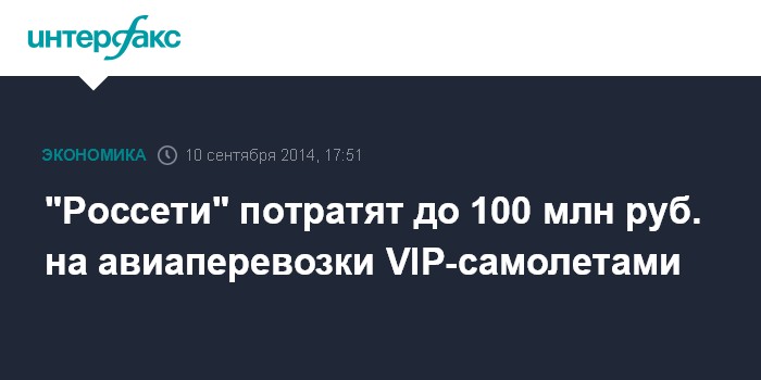 "Россети" потратят до 100 млн руб. на авиаперевозки VIP-самолетами