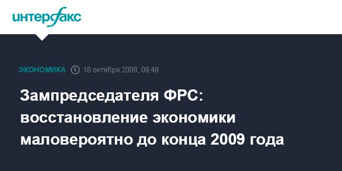 Зампредседателя ФРС: восстановление экономики маловероятно до конца 2009 года