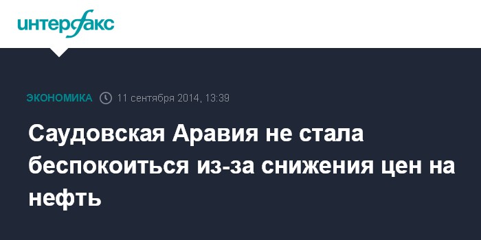 Москва. 11 сентября. INTERFAX.RU - Саудовская Аравия не обеспокоена снижением цен на нефть на мировых рынках, заявил журналистам в четверг министр нефтяной промышленности страны Али ан-Нуэйми, находящийся с визитом в Кувейте. "Нефтяные цены всегда колеблются, и это нормально", - цитирует его выступление агентство Bloomberg.