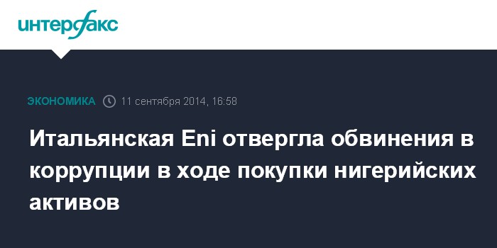 Итальянская Eni отвергла обвинения в коррупции в ходе покупки нигерийских активов