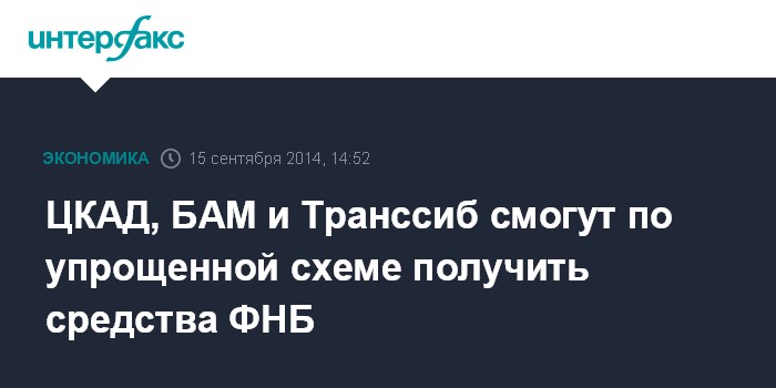 ЦКАД, БАМ и Транссиб смогут по упрощенной схеме получить средства ФНБ
