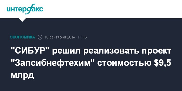 "СИБУР" решил реализовать проект "Запсибнефтехим" стоимостью $9,5 млрд
