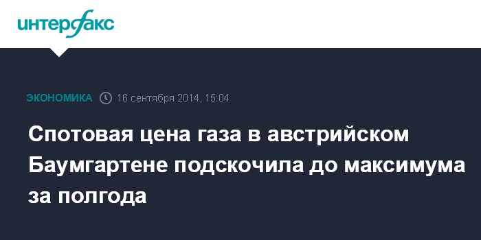 Спотовая цена газа в австрийском Баумгартене подскочила до максимума за полгода