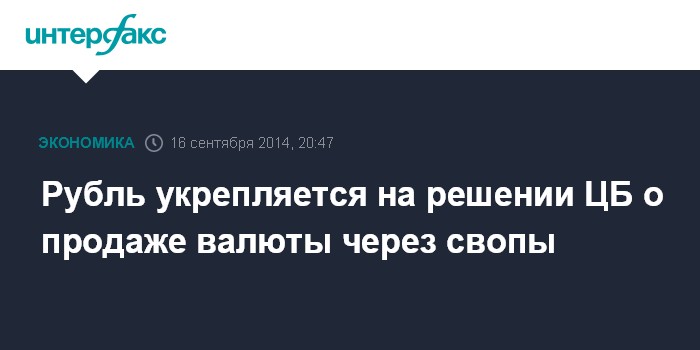 С 17 сентября устанавливает следующие параметры этих операций: процентная ставка по рублевой части сделки - ключевая ставка Банка России, уменьшенная на 1%, то есть 7,0% годовых, процентная ставка по долларовой части сделки - 1,50% годовых. Лимит на объем операций "валютный своп" сроками расчетов "сегодня/завтра" устанавливается в размере $1 млрд, на объем операций сроками расчетов "завтра/послезавтра" - $2 миллиарда.