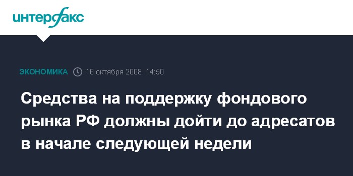 Средства на поддержку фондового рынка РФ должны дойти до адресатов в начале следующей недели