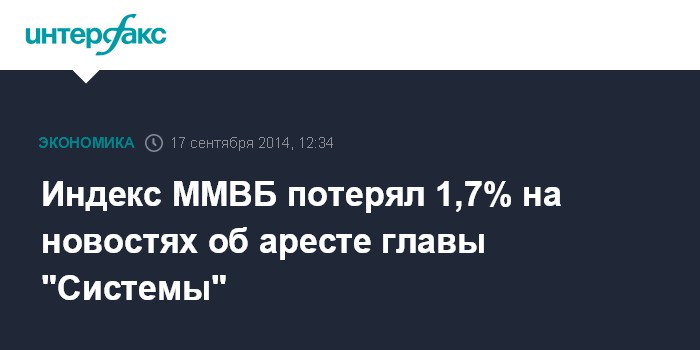 Индекс ММВБ потерял 1,7% на новостях об аресте главы "Системы"