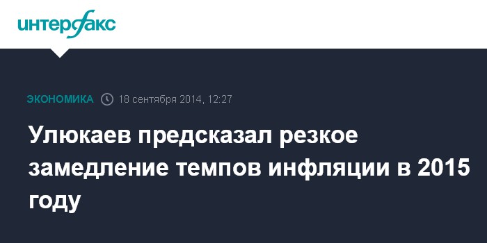 Москва. 18 сентября. INTERFAX.RU - Инфляция в 2015 году существенно замедлится, наибольшее сокращение темпов роста произойдет во втором полугодии, считает министр экономического развития Алексей Улюкаев.