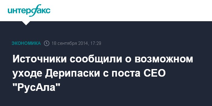 Источники сообщили о возможном уходе Дерипаски с поста CEO "РусАла"