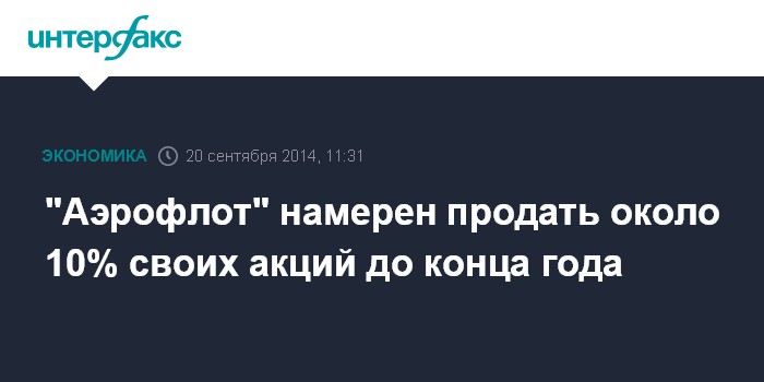 "Аэрофлот" намерен продать около 10% своих акций до конца года