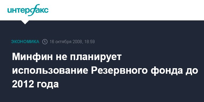 Минфин не планирует использование Резервного фонда до 2012 года