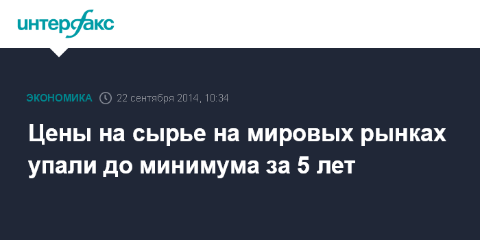 Цены на сырье на мировых рынках упали до минимума за 5 лет
