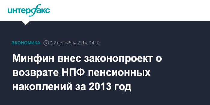 Минфин внес законопроект о возврате НПФ пенсионных накоплений за 2013 год