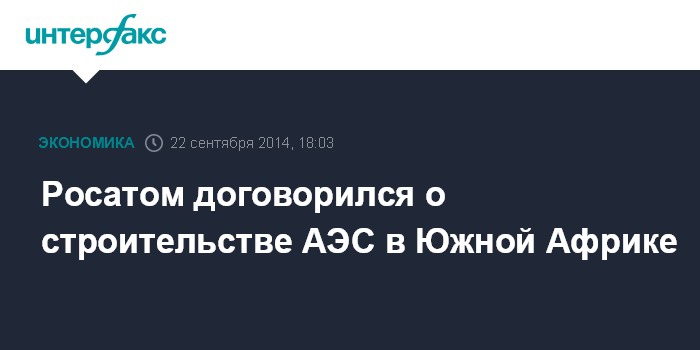 Как сообщалось, в ноябре 2013 года "Росатом" и Минэнерго ЮАР парафировали соглашение о стратегическом партнерстве и сотрудничестве в области атомной энергетики и промышленности.