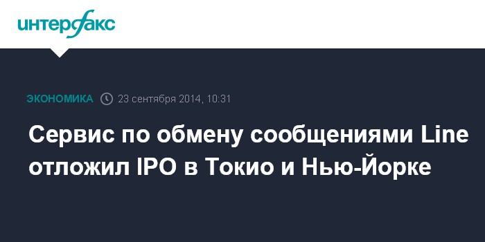Москва. 23 сентября. INTERFAX.RU - Line, ладелец наиболее популярного в Японии сервиса по обмену сообщениями для смартфонов, отложил проведение первичного размещения акций в Токио и Нью-Йорке, сообщает Nikkei.