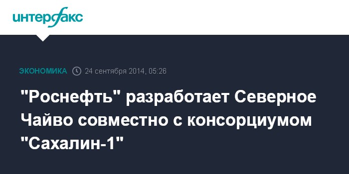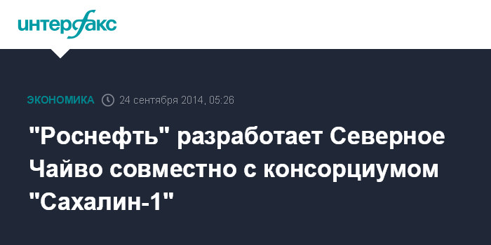 "Роснефть" разработает Северное Чайво совместно с консорциумом "Сахалин-1"