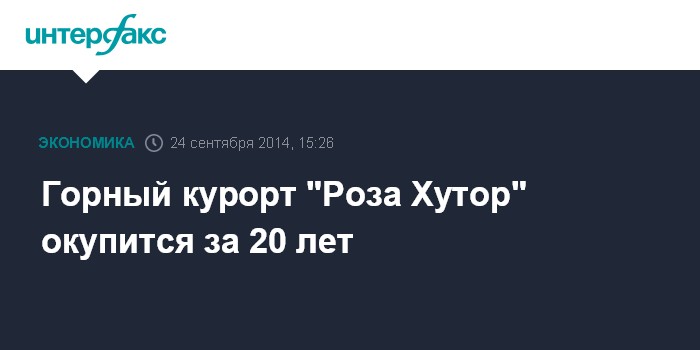 Москва. 24 сентября. INTERFAX.RU - Горный курорт "Роза Хутор" выйдет на окупаемость приблизительно в течение 20 лет, заявил генеральный директор курорта Сергей Бачин журналистам в среду. Он отметил, что сейчас процентная ставка "Розы Хутор" по кредитам составляет 8-9% годовых, однако для инфраструктурных проектов такого масштаба это слишком много.