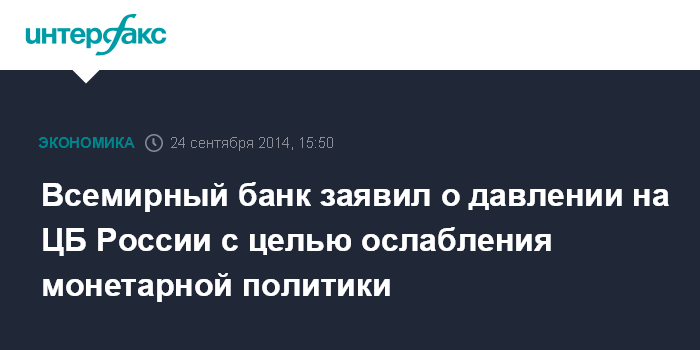 Всемирный банк заявил о давлении на ЦБ России с целью ослабления монетарной политики