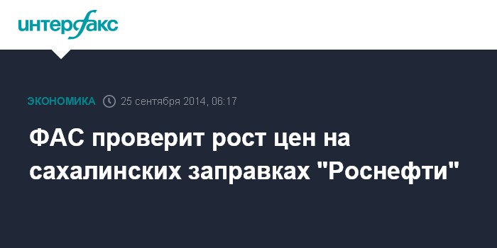Москва. 25 сентября. INTERFAX.RU - УФАС по Сахалинской области направило в центральный аппарат Федеральной антимонопольной службы материалы своей проверки по поводу роста цен на АЗС "Роснефти" на Сахалине летом текущего года, между тем в четверг на АЗС "Роснефти" на Сахалине произошел очередной рост цен.