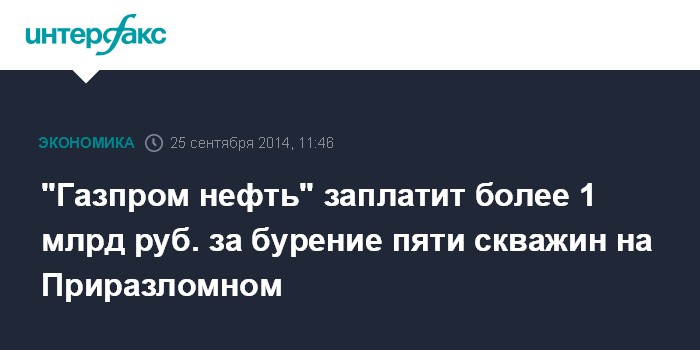 "Газпром нефть" заплатит более 1 млрд руб. за бурение пяти скважин на Приразломном