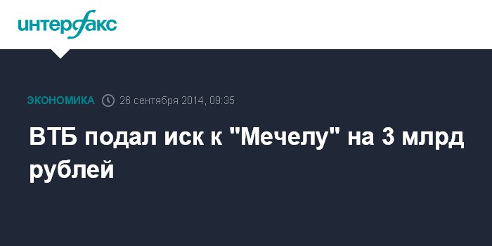ВТБ подал иск к "Мечелу" на 3 млрд рублей