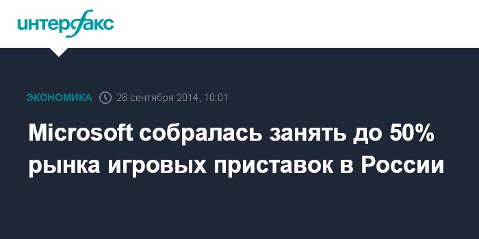 Москва. 26 сентября. INTERFAX.RU - Американская Microsoft рассчитывает занять до 50% российского рынка игровых приставок за счет новой версии игровой консоли - Xbox One, следует из заявления руководителя отдела аппаратно-развлекательных платформ Microsoft Россия Андрея Калугина. "Я уверен, что Xbox One в России ждет, как минимум, такой же успех как и Xbox 360", - говорит он.