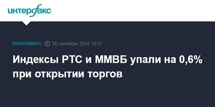 Индексы РТС и ММВБ упали на 0,6% при открытии торгов