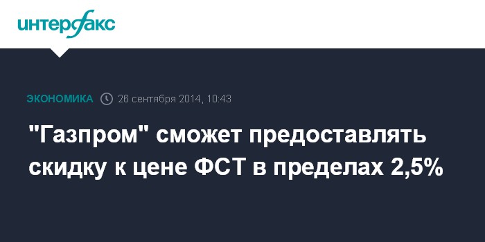 "Газпром" сможет предоставлять скидку к цене ФСТ в пределах 2,5%
