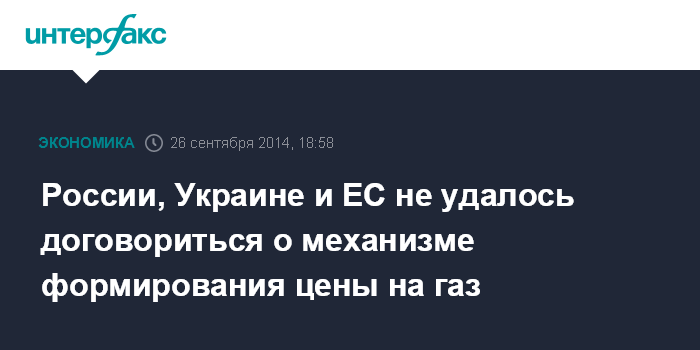 России, Украине и ЕС не удалось договориться о механизме формирования цены на газ