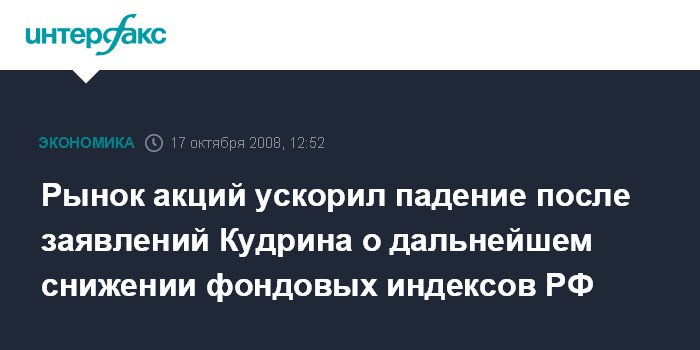 Рынок акций ускорил падение после заявлений Кудрина о дальнейшем снижении фондовых индексов РФ