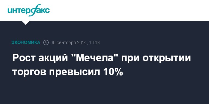 Рост акций "Мечела" при открытии торгов превысил 10%