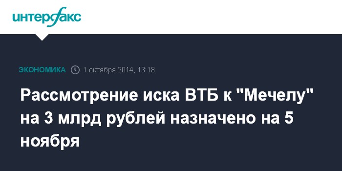 Рассмотрение иска ВТБ к "Мечелу" на 3 млрд рублей назначено на 5 ноября