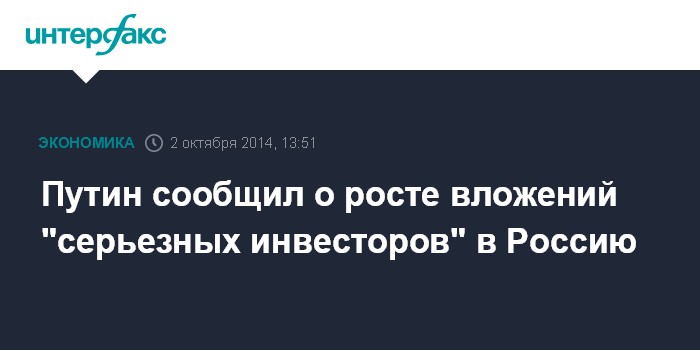 Путин сообщил о росте вложений "серьезных инвесторов" в Россию
